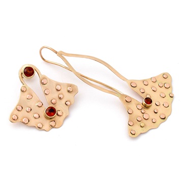 18kt yellow gold asymmetric earrings set with an assortment of vibrant colourful cabochon Tourmalines.